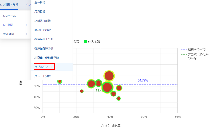 L-DXの活用により、信頼性あるデータからの簡易に各種分析レポートが作成可能となります。これまで過去実績を踏襲しがちであったMD計画を、データ分析にもどいたMD計画の立案が可能となり、機会ロス削減、在庫減、粗利率向上が期待できます。
